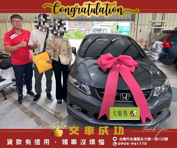 最新消息 | 感謝 台南市 北區 陳先生購買2013年Honda CIVIC 9代 1.8 灰色